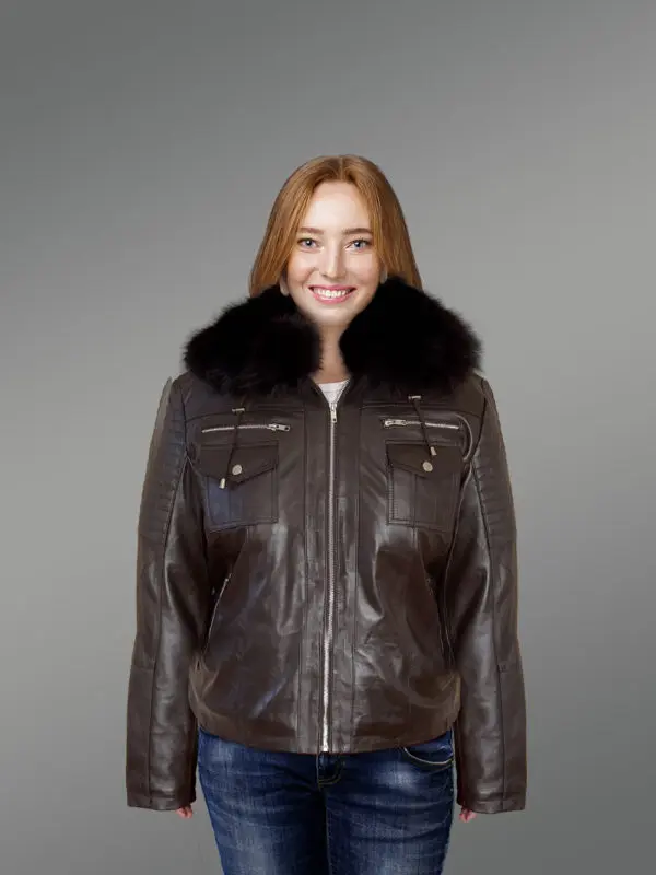 This luxurious womens leather jacket with hood is designed to ensure maximum warmth and comfort in winter. It has been handcrafted using premium quality materials. Therefore, it’s going to look and feel the same even after decades of use. It requires only minimum maintenance and care over the years. This elegant outfit of lambskin leather undeniably represents the finesse of gifted designers.