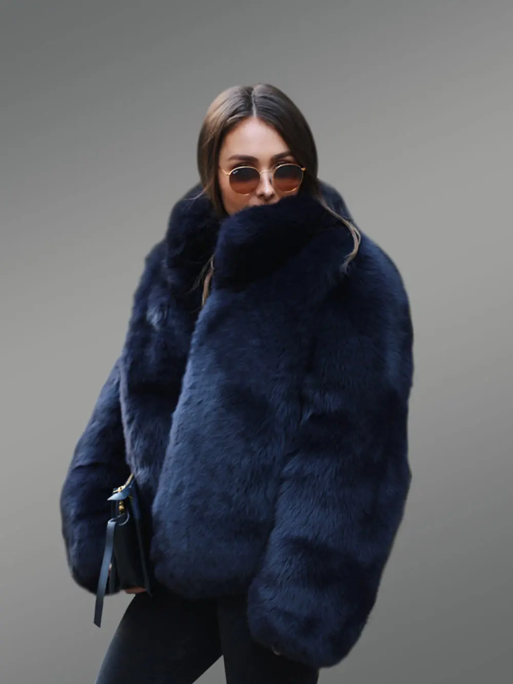 Elegant Womens Fox Fur Coat in Blue with Stunning Features