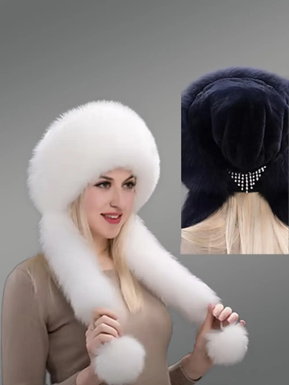 Womens Fox Fur Hat with Pompom Tails–Trendy & Elegant with Cozy Feel