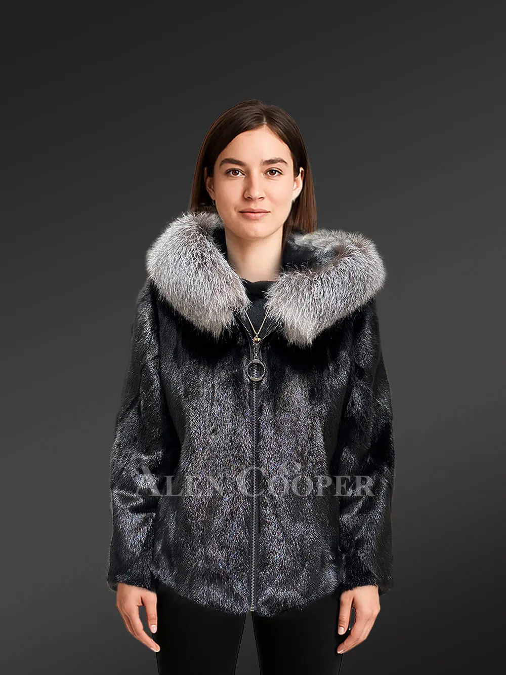Women’s Fullskin Mink Coat with Fox Collar