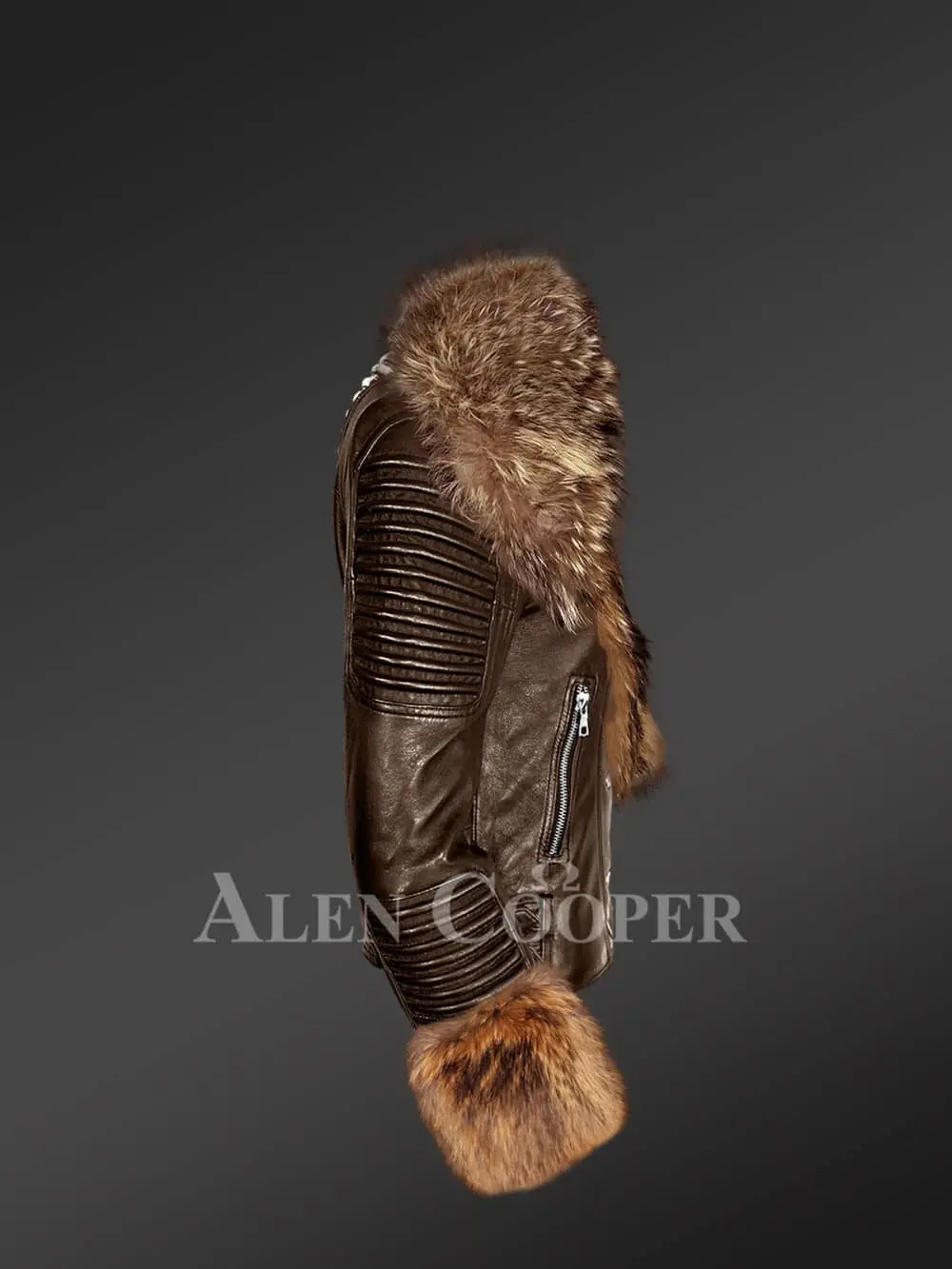 One can easily attach or detach the furry lapel on an as needed basis. The natural colors of the raccoon fur certainly look outstanding in contrast to the dark brown lambskin leather. Furthermore, it offers more warmth to the neck, shoulders, back and front part of one’s body in colder months.