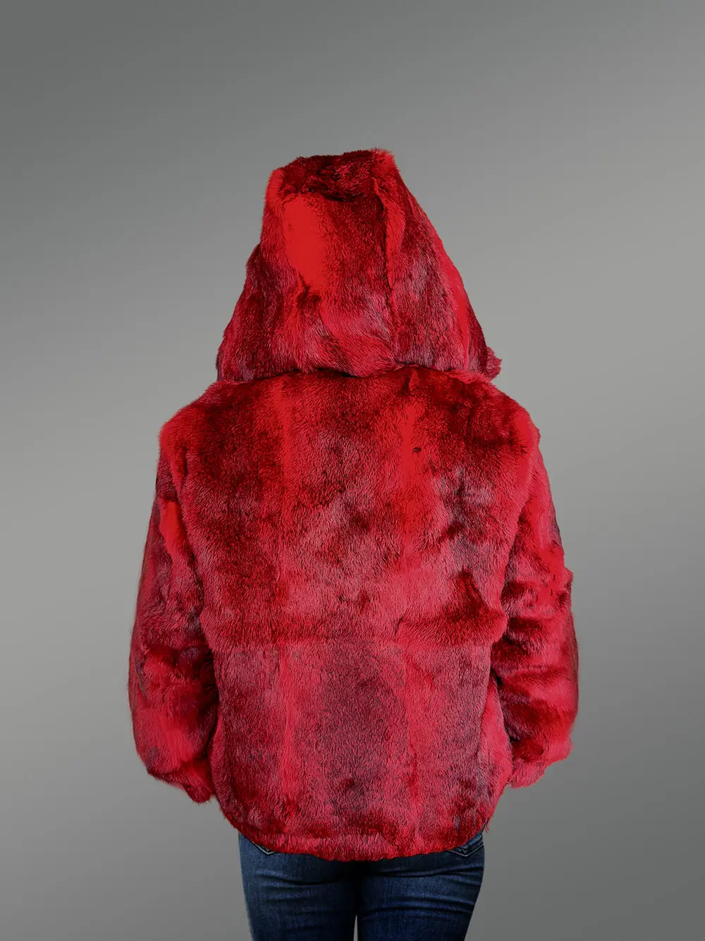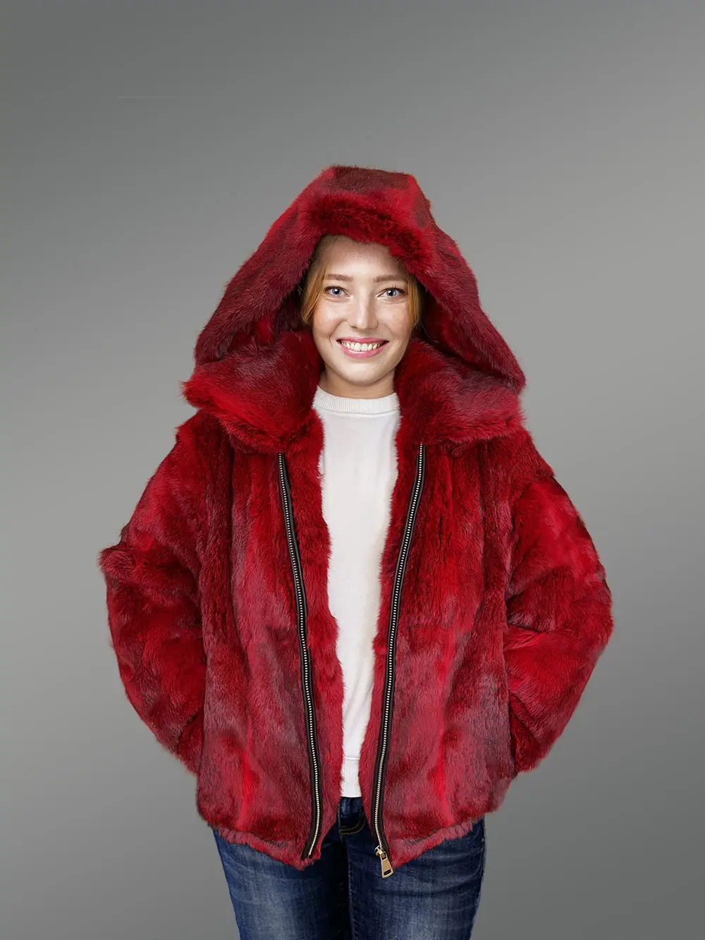 - Deluxe bomber jacket of rabbit fur looks brilliant in red