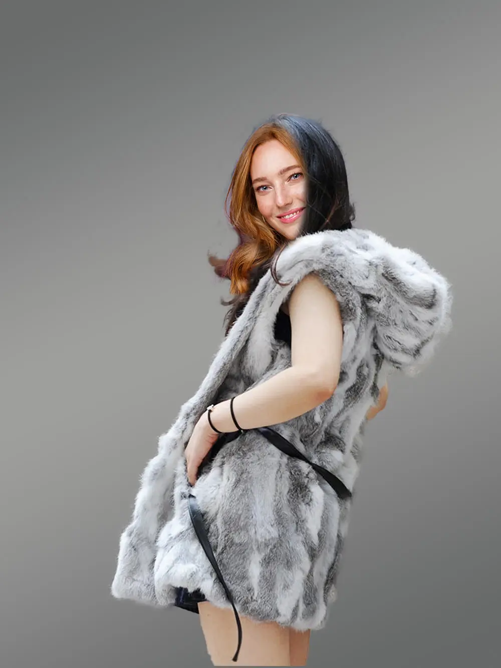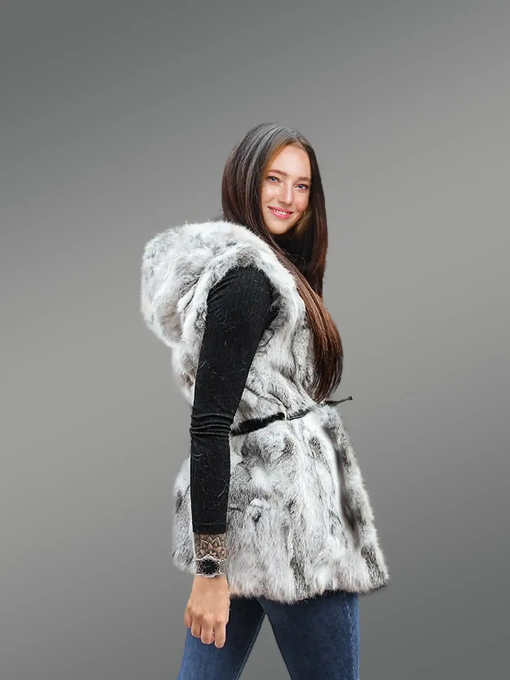 Aside from the marked glamour and comfort, the belted mid length vest is guaranteed to last a long time in fashion mania. Tough tailoring permits for frigid mobility. Genuine rabbit hair is non-shedding and retains its appeal.