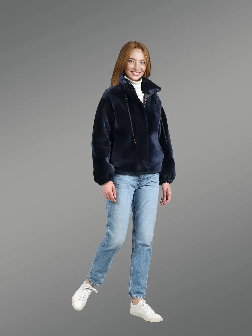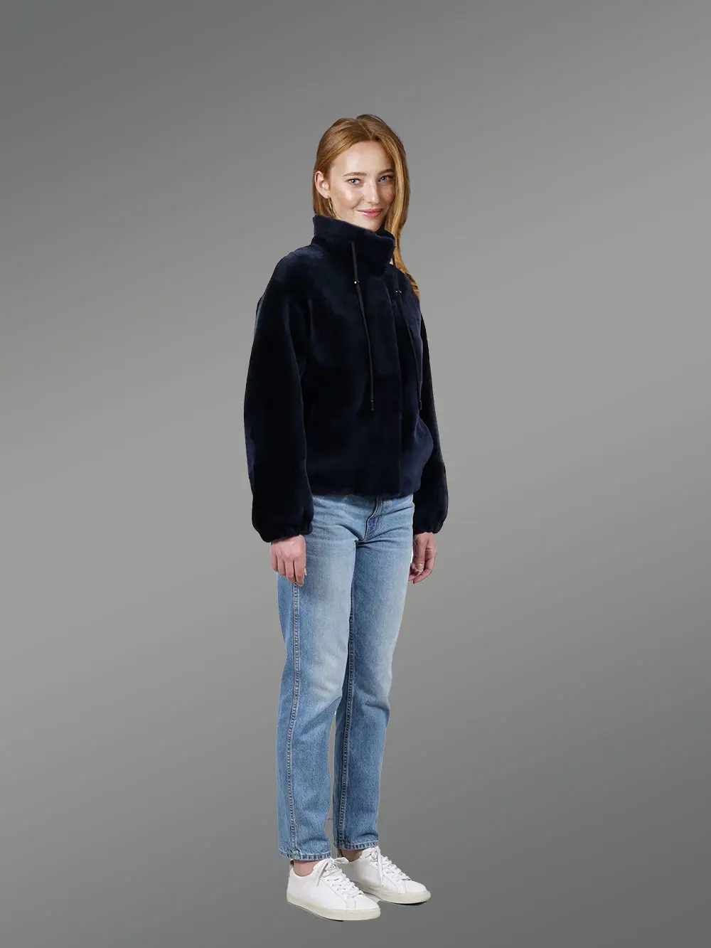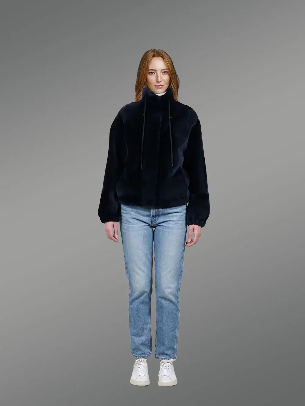 Women’s Shearling Bomber Jacket with Turtle Neck
