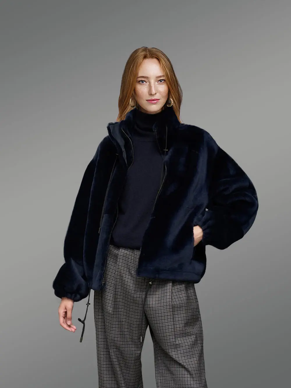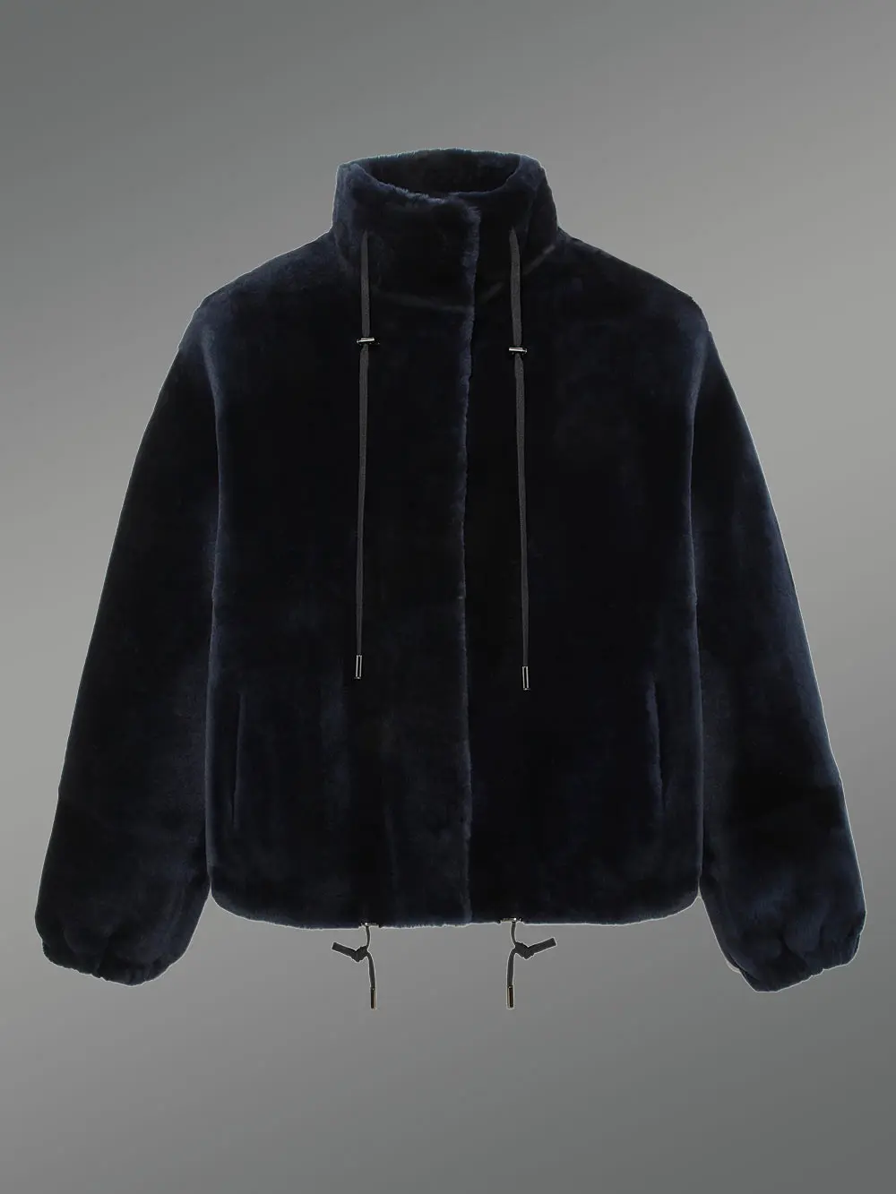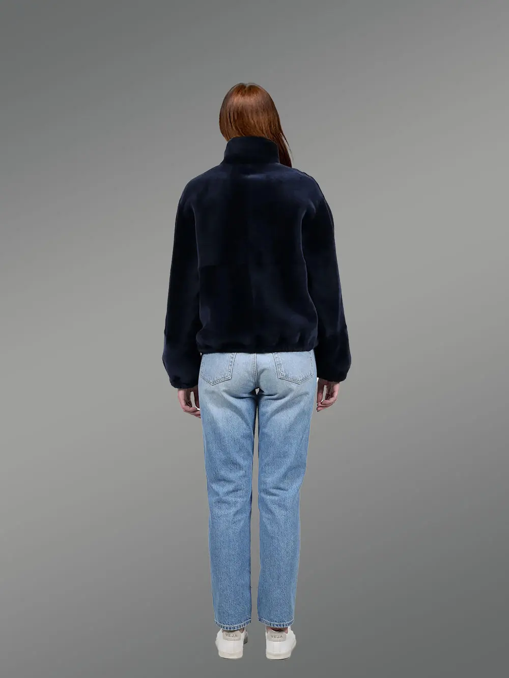 Women’s Shearling Bomber Jacket with Turtle Neck