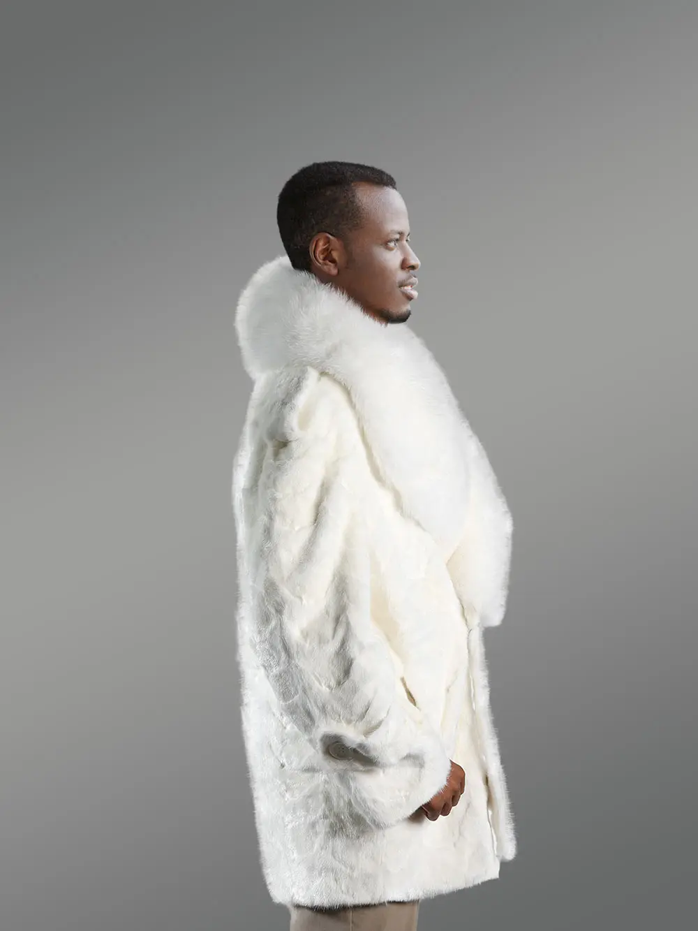 Mens Mink Pea Coat with Fox Fur Collar- A Classic Comfy Warm Wear